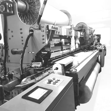 Our Weaving Department has all new equipment installed in 2017, 2020 and 2025. We have a range of 12 CNC Shuttle-less technology Rapier Dobby machines which are capable of handling smaller MOQs and weaving runs, while also being extremely versatile with their product range. These are complimented with 4 CNC fully electronic controlled Jacquard machines with 2688 Hooks, also functioning with Rapier technology for flexibility and versatility. To support larger volumes and bulk manufacturing we also have an installed capacity of 5 Air-Jet machines. These range from 2.6 meters to 3.0 meters in Reed-width – and are a mix of Jumbo Jacquards ranging from 6144 to 2688 hooks, as well as Staubli Dobby models. In total we have an installed in-house weaving capacity which can reach 80,000 KGs or 175,000 pounds per month.